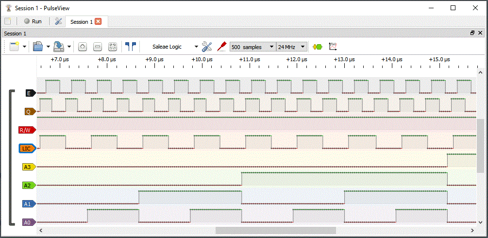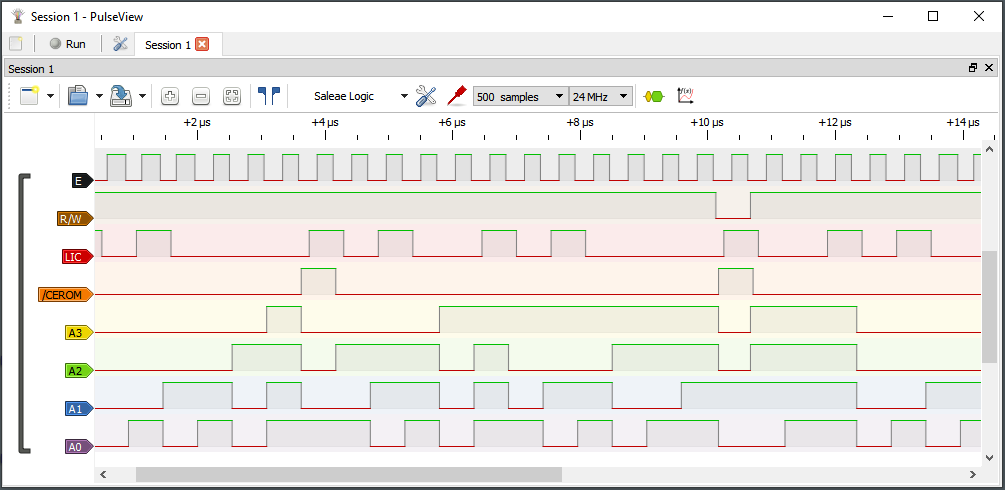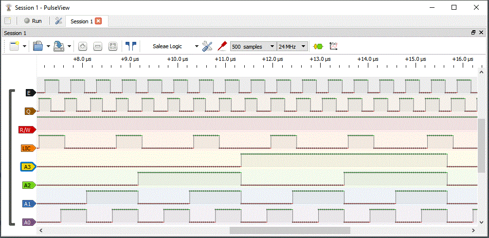 run the NOP opcode. A little 8-channel logic analyzer shows the