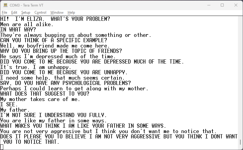 The capitel letter sentences are from ELIZA.
