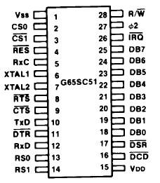 IC pinout: 65C51, 6309E, 62C256, 28C64: