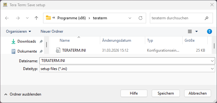 Don't forget to Save Setup of Tera Term: