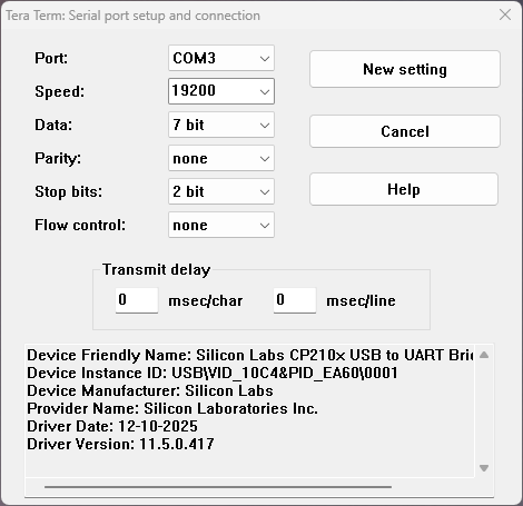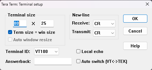 The Tera Term Terminal setup is simple: