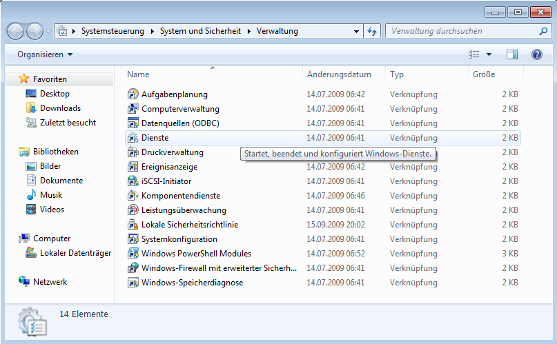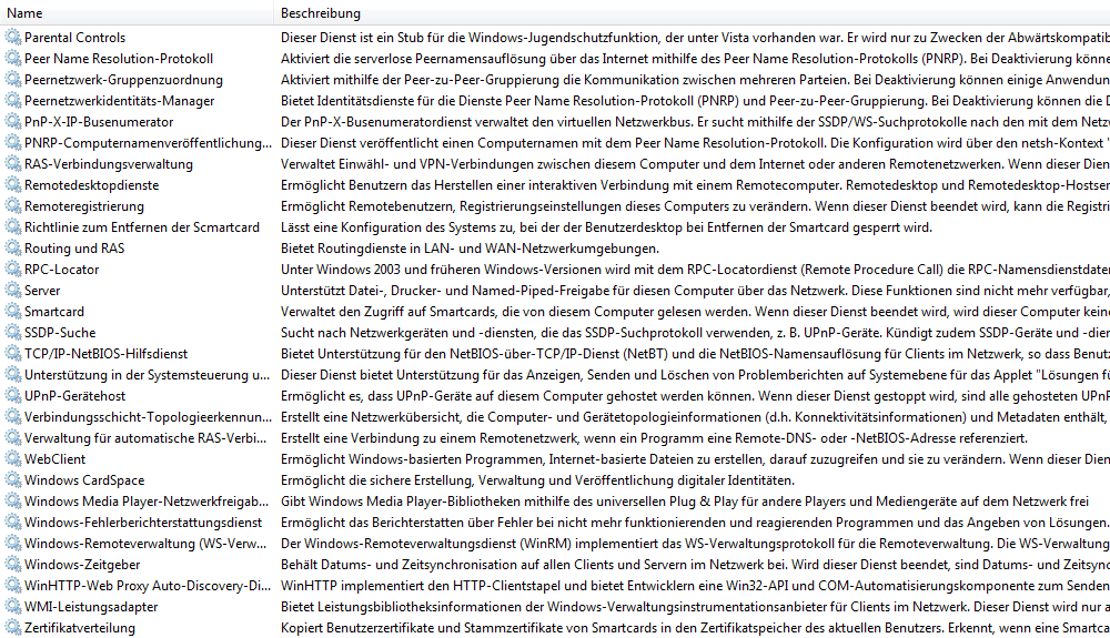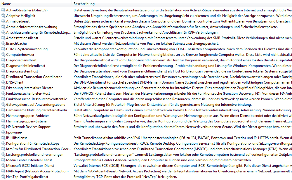 Netzwerkspeicher-Schnittstellendienst Netzwerklistendienst NLA (Network Location Awareness) Netzwerkverbindungen DHCP-Client |