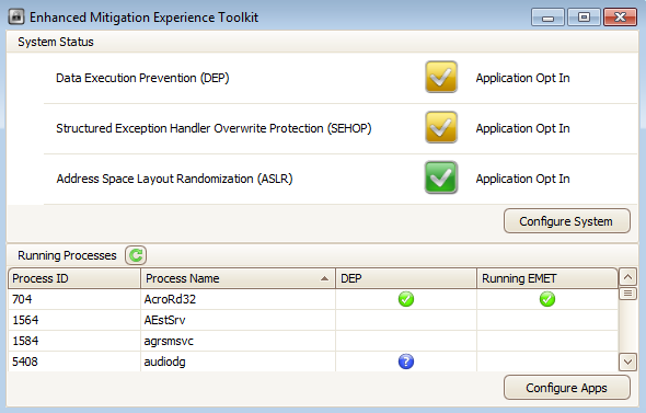 rem EMET-Adobe-Reader.bat rem Diese Batch Datei mit Rechts-Klick und "Als Adminstrator ausführen" C: cd \Program Files\EMET EMET_Conf.exe --add "C:\Program Files\Adobe\Reader 8.0\Reader\AcroRd32.exe" pause |