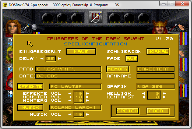 richtig unter DOSbox. Das Dark Savant Programm kann EMS Speicher