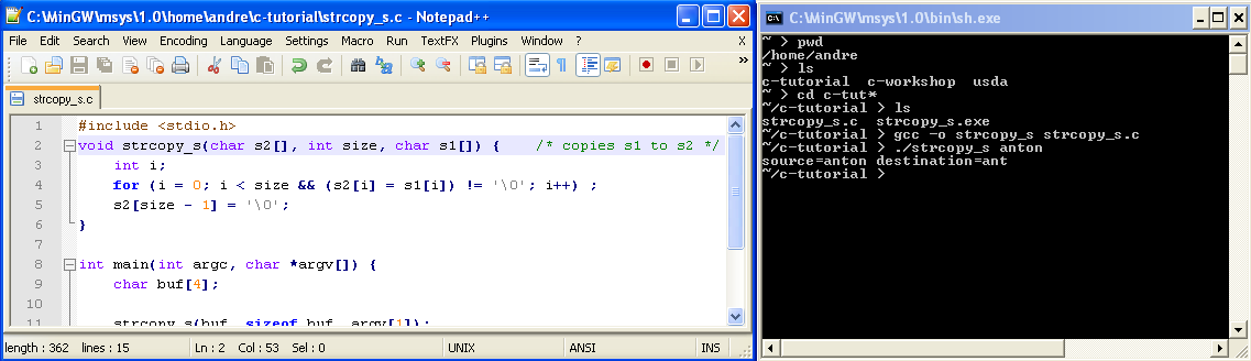 This memorandum is a tutorial to make learning C as painless as possible. The first part concentrates on the central